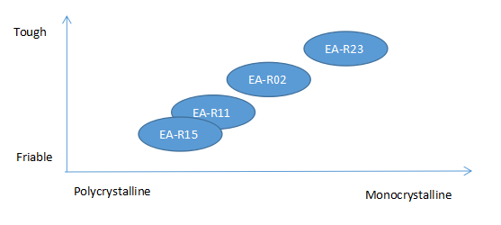 Best self-sharpening performance and high thermal stability, suitable for creep grinding, the good choice for high precision grinding where premium surface finish and form remaining are demanded.